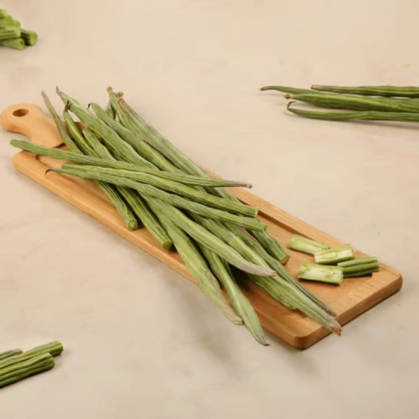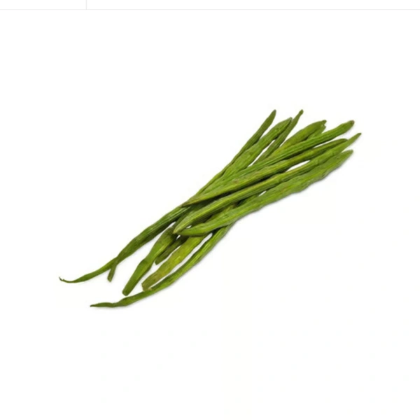 Drumstick refers to the long, slender seed pods of the Moringa tree. for its exceptional nutritional value. The pods are green, firm, and slightly woody on the outside, with soft, fleshy pulp and small seeds inside.