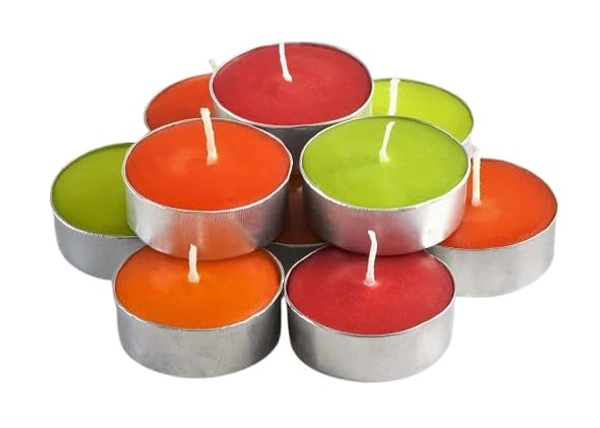 Mixed Color Tea Lights Candles (रंगीन टी लाइट मोमबत्ती ) - 12 Numbers - 3 Hour Smokeless Burn