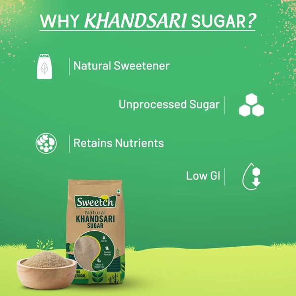 🌿 Sweetch Khandsari Sugar – Unrefined, Unprocessed और Chemical-Free – बनी है पारंपरिक तरीके से, ताकि हर दाना रहे नेचुरल और पौष्टिक।